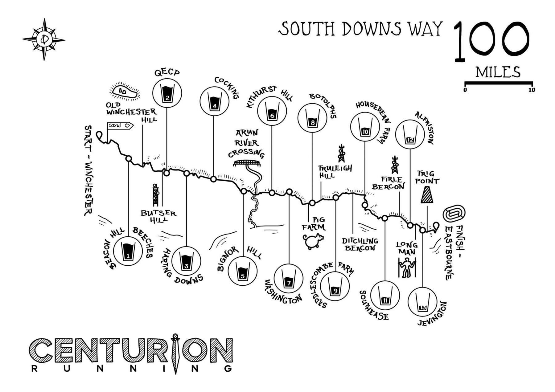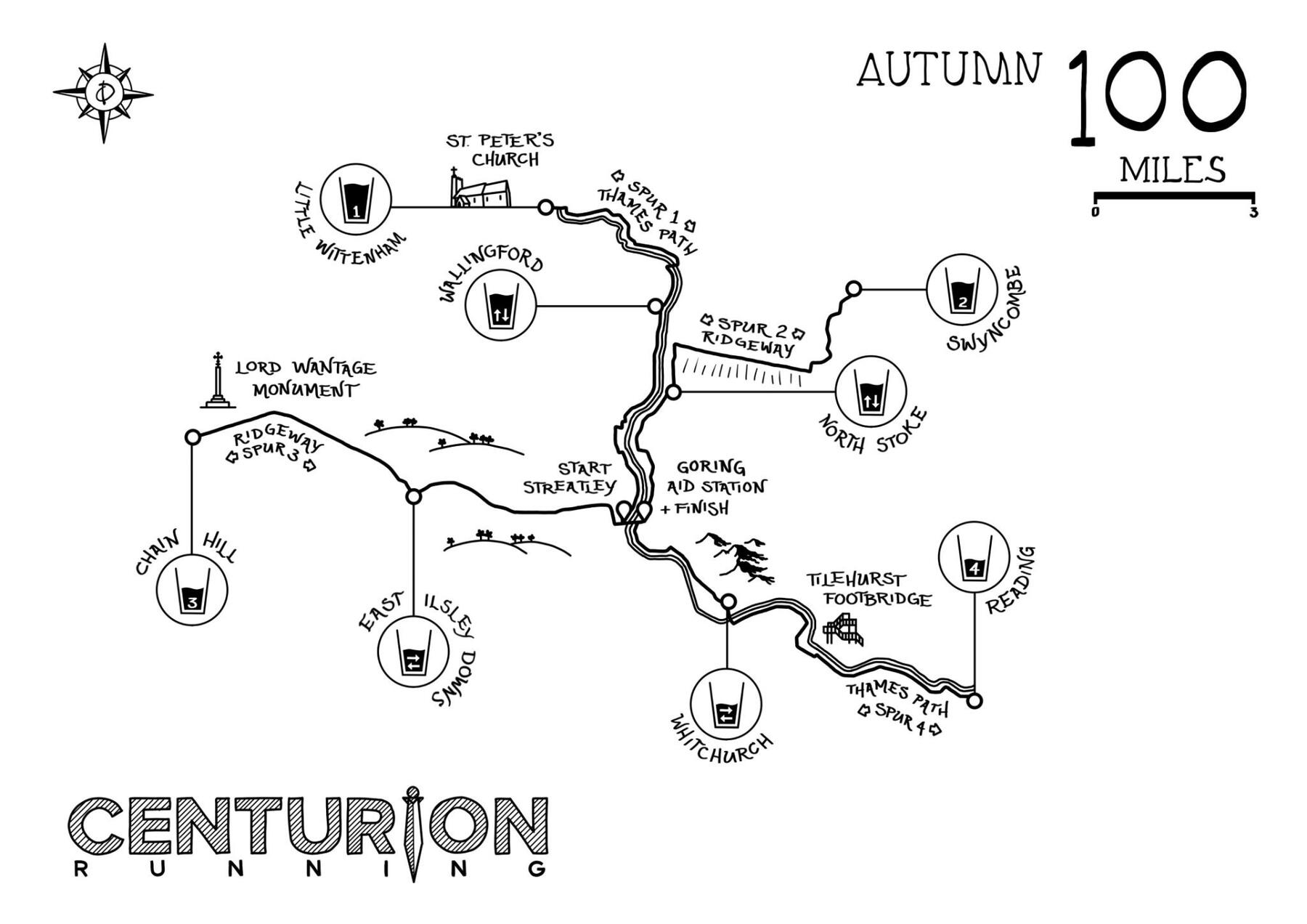 CENTURION RUNNINGIn 2018, I created a series of 8 course maps for Centurion Running to appear on the finisher t-shirts for their series of 50 and 100 mile ultra marathon events in the UK."We commissioned Owen to create a series of maps for our 8 events after seeing some sketches of his online for races he had run himself. We loved the design, the feel of the maps, the attention to detail and particular the features that brought the race to light beyond that which a simple land map could deliver. We were looking forward to seeing what he created, but in the end he totally blew us away with his work.Each time we opened one of the new designs it was with a big smile on our faces. Any changes that needed making were always minor but Owen always came back to us in an incredibly short time frame with amendments and his communication was simply first class. From start to finish it has been a pleasure working with him and we will definitely be looking to continue working with him again in the future."- James Elson, Centurion Running Event Director